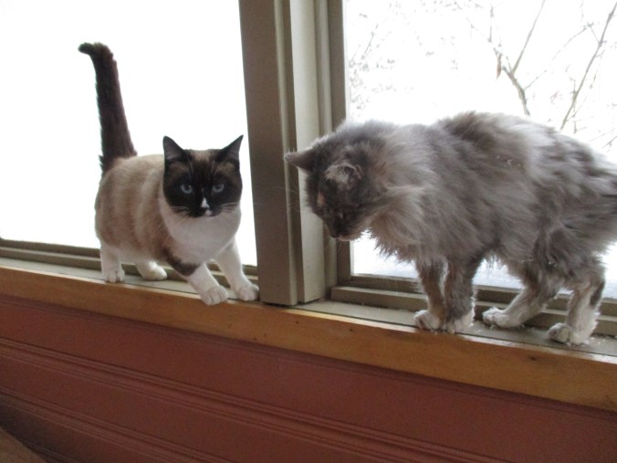 We have also gained more animals; this time, two cats. Ironically, they used to belong to our neighbor in town, the one who had complained about us. When he died, the cats sort of adopted us, so when we moved out to the country, so did they. I worried that they would run away in an attempt to return to their old home, especially because they live on the porch and can come and go as they please, but they chose to stay. P. and I are not really “cat people,” and P. could never really become one due to his cat allergy anyway, but they are entertaining and nice enough and perhaps they will keep the mouse population under control as well as keep those pesky birds that P. finds so annoying away from the house.